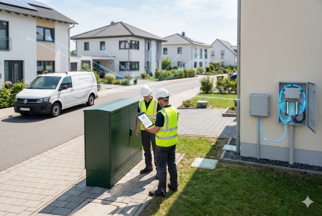 - Herstellung & Aktivierung: Fachgerechter Anschluss von Gebäuden an das bestehende Glasfasernetz.
